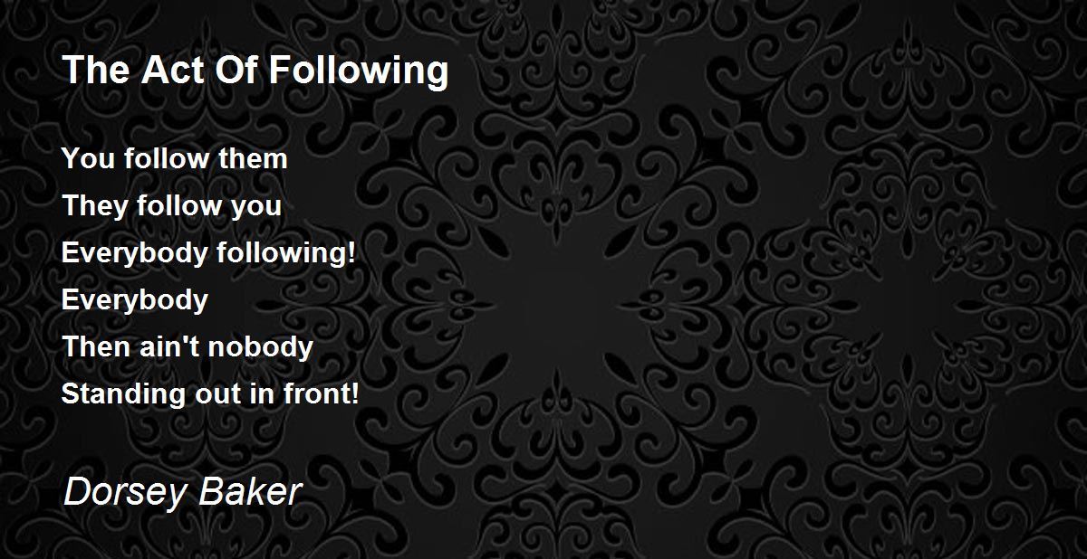 You follow themThey follow you Everybody following! EverybodyThen ain't nobodyStanding out in front!