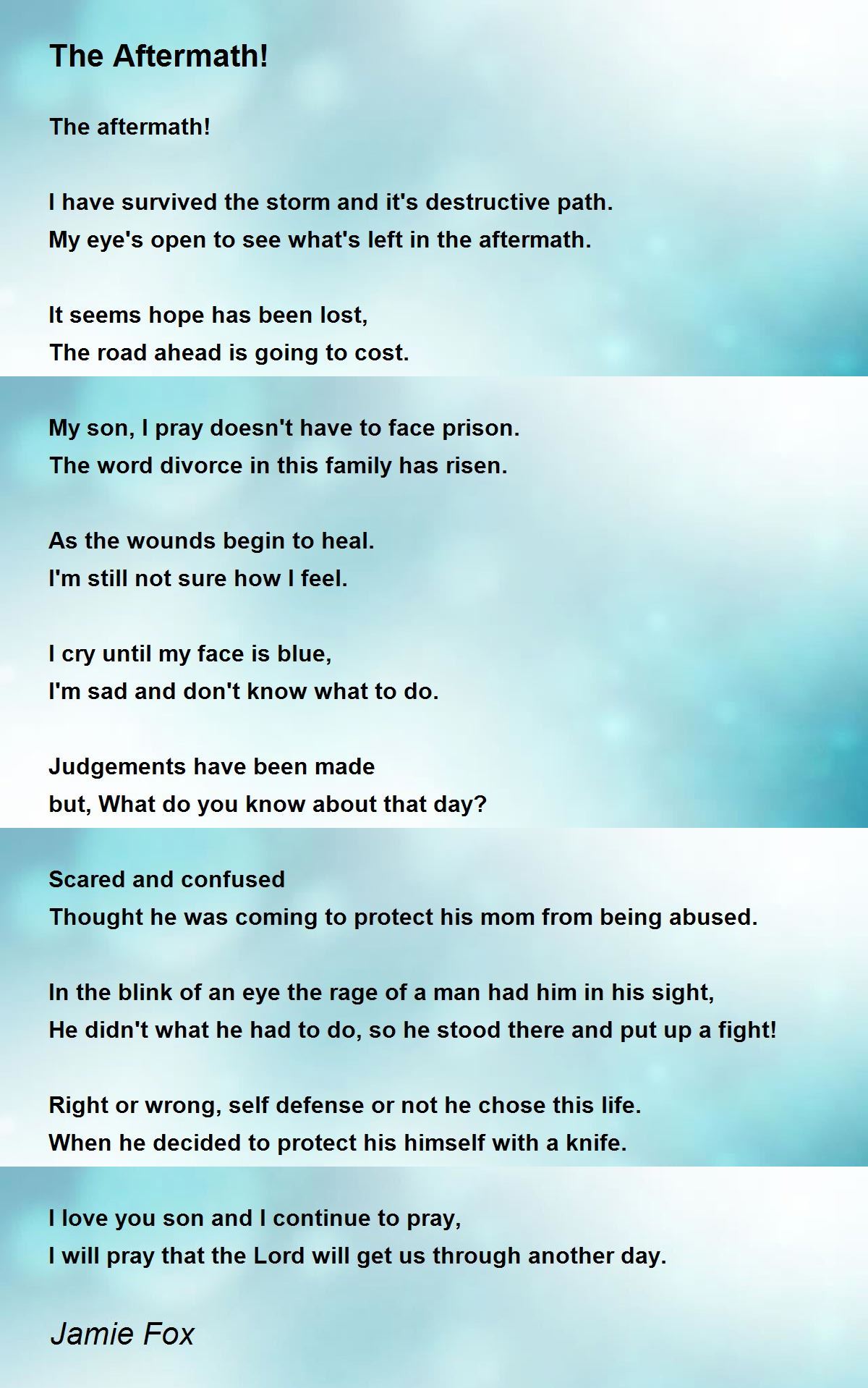I love you son and I continue to pray,
