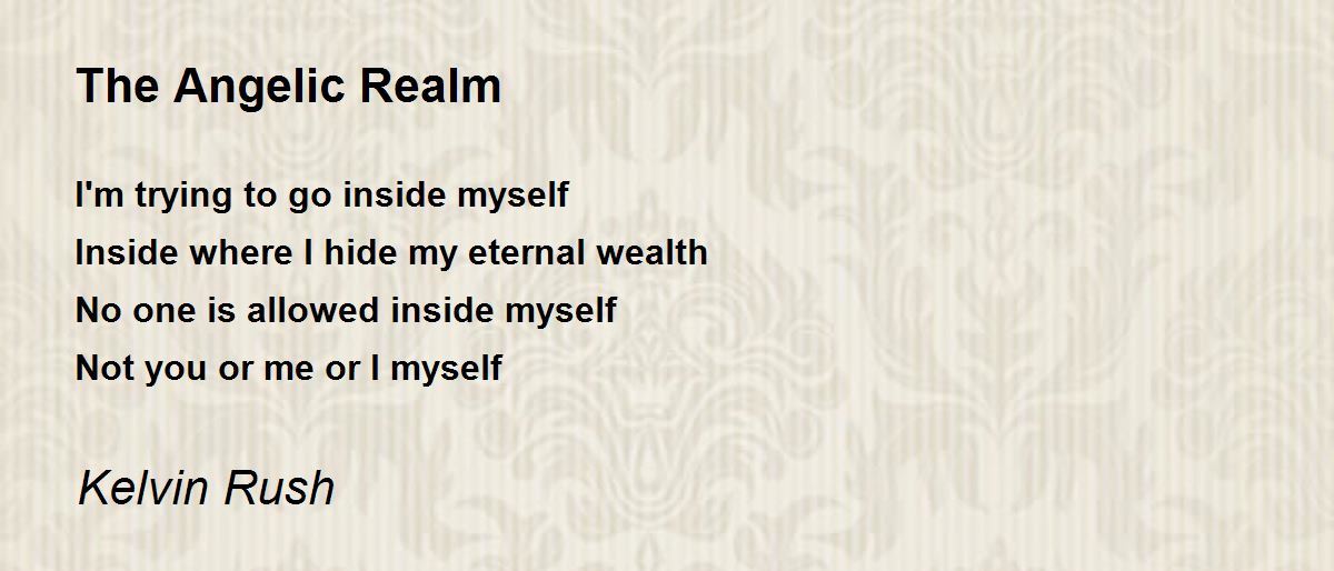 I'm trying to go inside myself Inside where I hide my eternal wealth No one is allowed inside myself Not you or me or I myself
