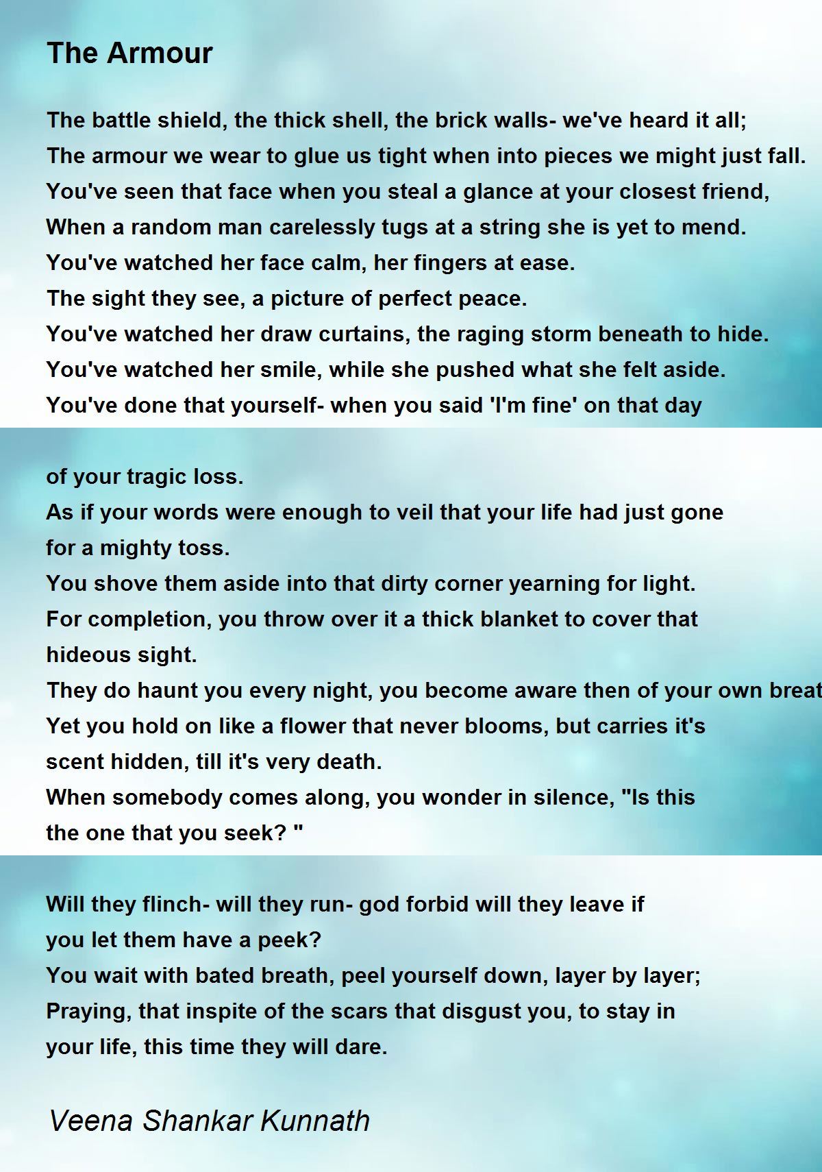 The armour we wear to glue us tight when into pieces we might just fall.