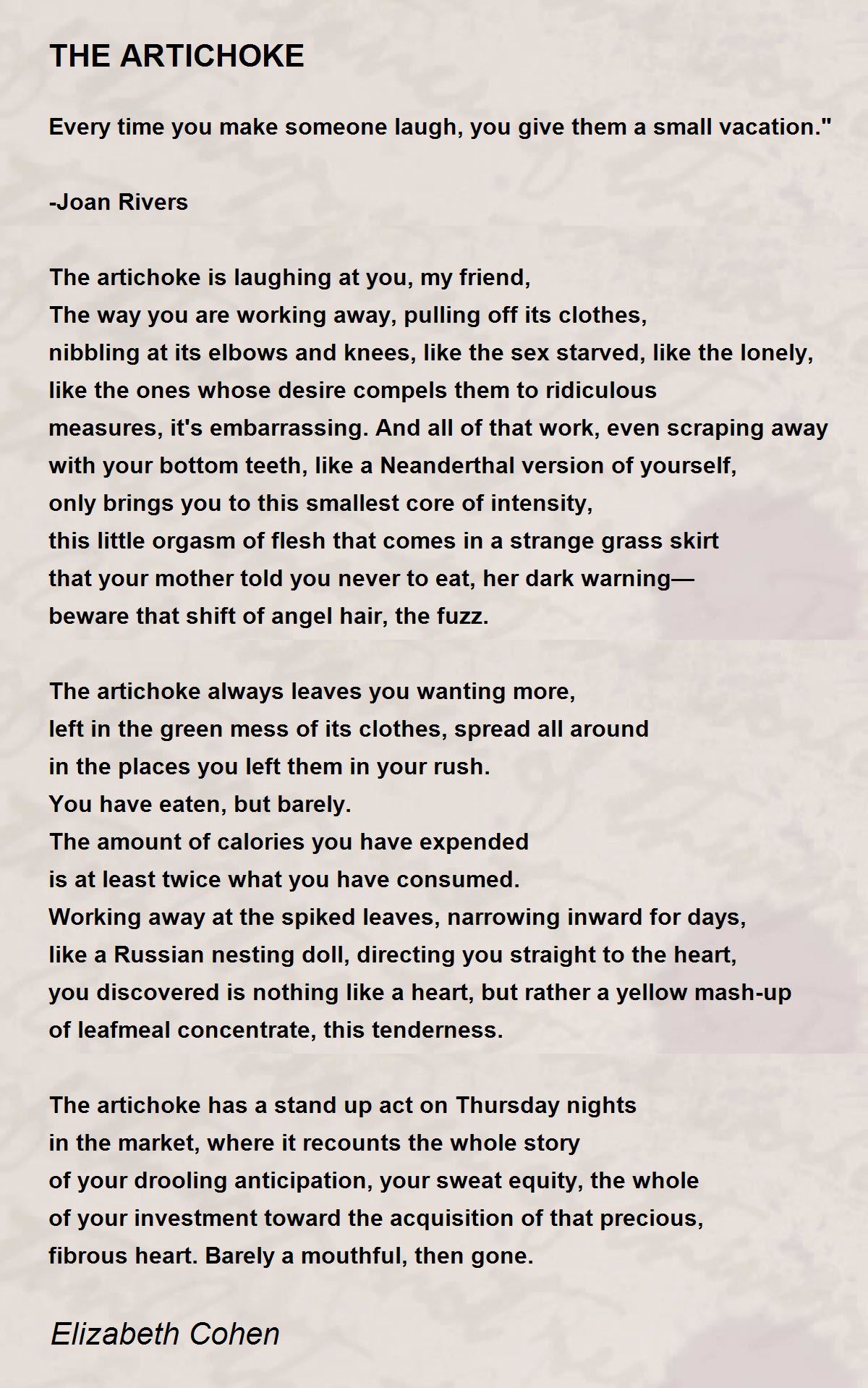 The artichoke always leaves you wanting more,