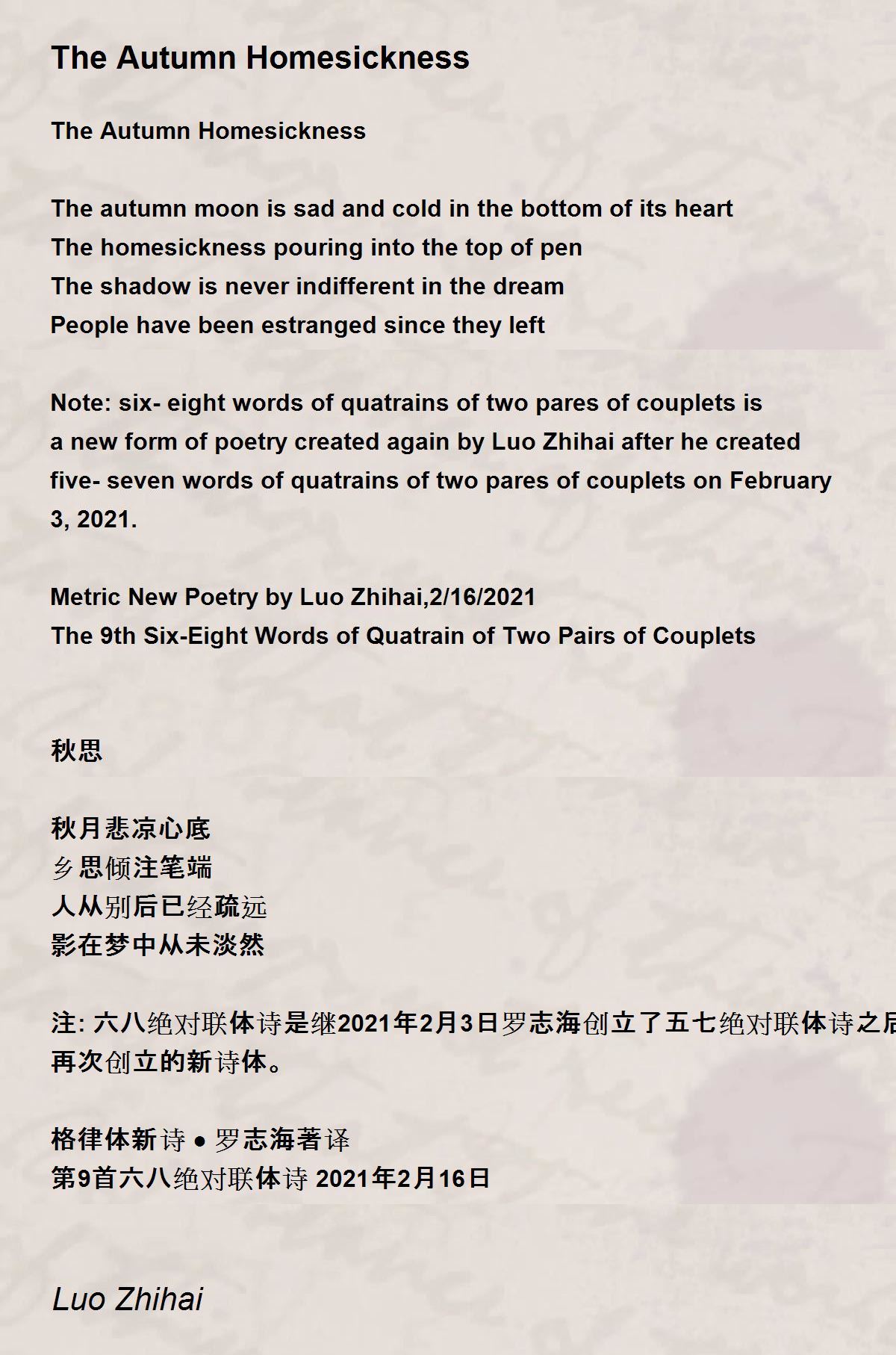 Metric New Poetry by Luo Zhihai,2/16/2021