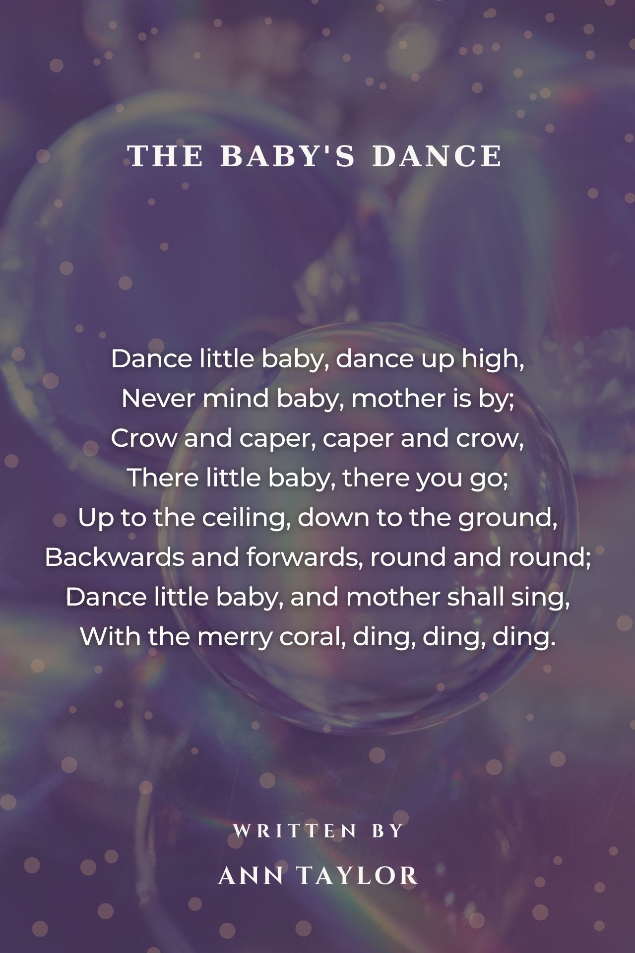 Backwards and forwards, round and round; Dance little baby, and mother shall sing, With the merry coral, ding, ding, ding. very beautiful poem very great 10++++++++++++++++++++++++++++++++