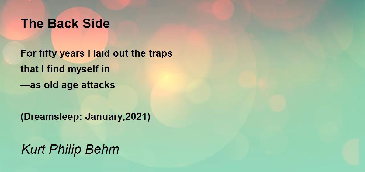 For fifty years I laid out the traps that I find myself in —as old age attacks (Dreamsleep: January,2021)