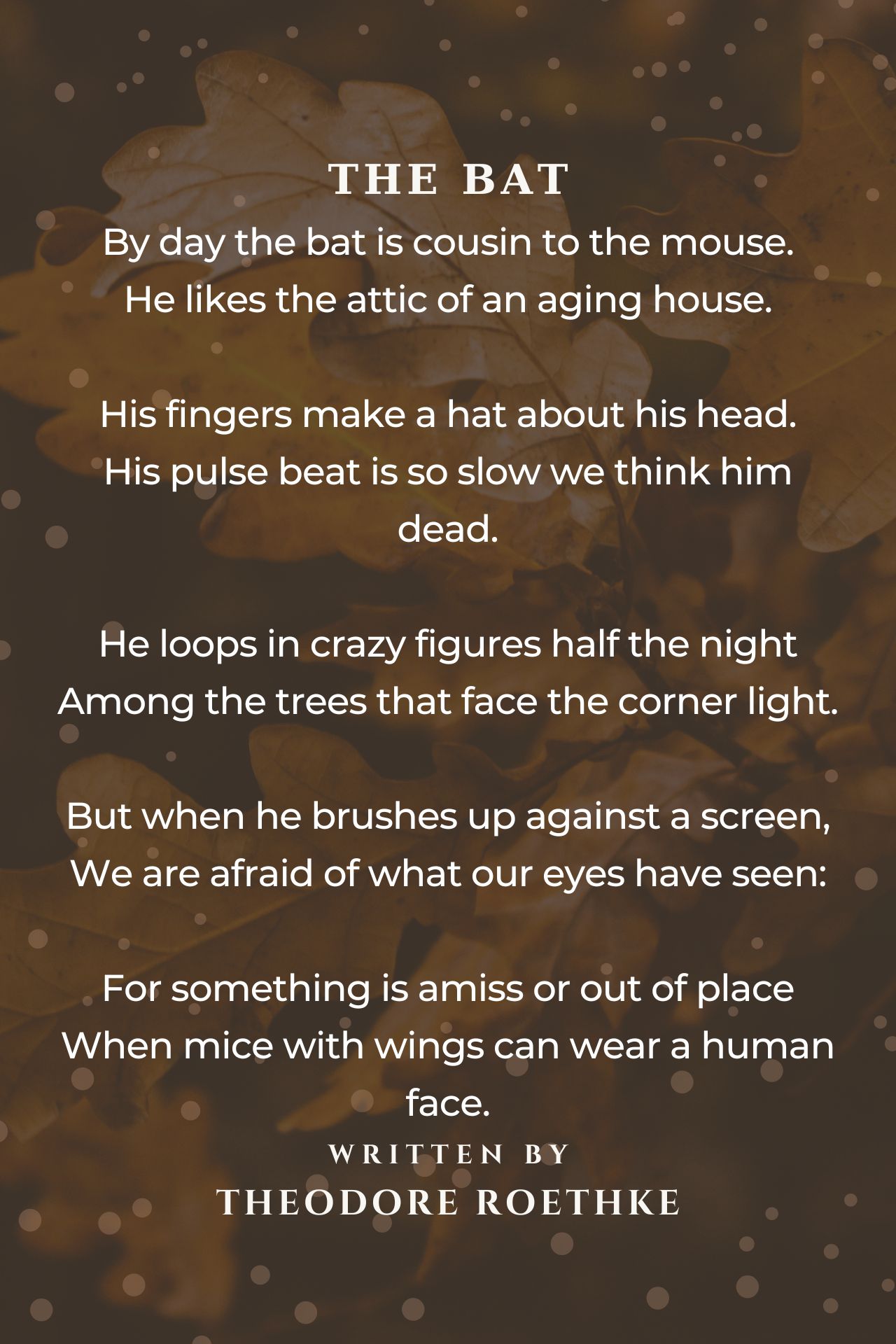 By day the bat is cousin to the mouse.