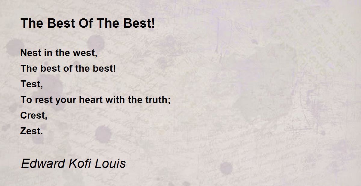 Nest in the west, The best of the best! Test, To rest your heart with the truth; Crest, Zest.