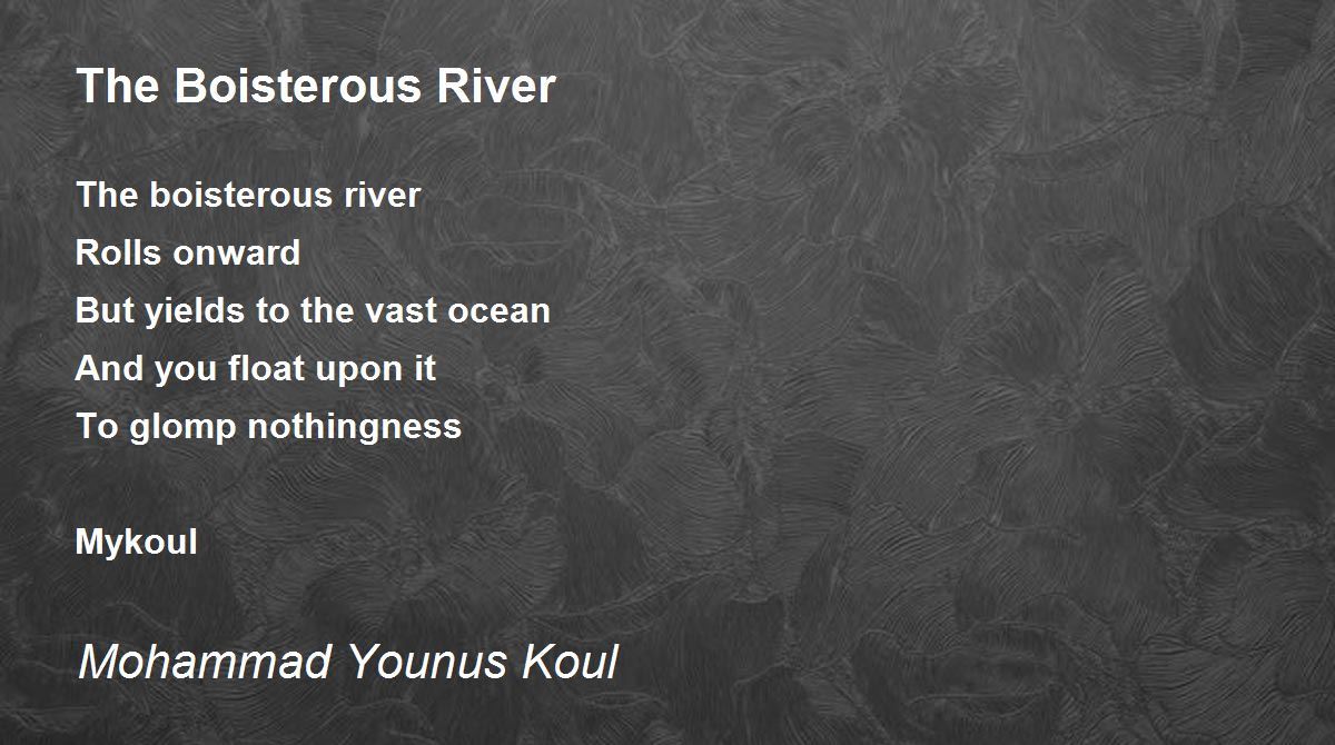 The boisterous river Rolls onward But yields to the vast ocean And you float upon it To glomp nothingness Mykoul
