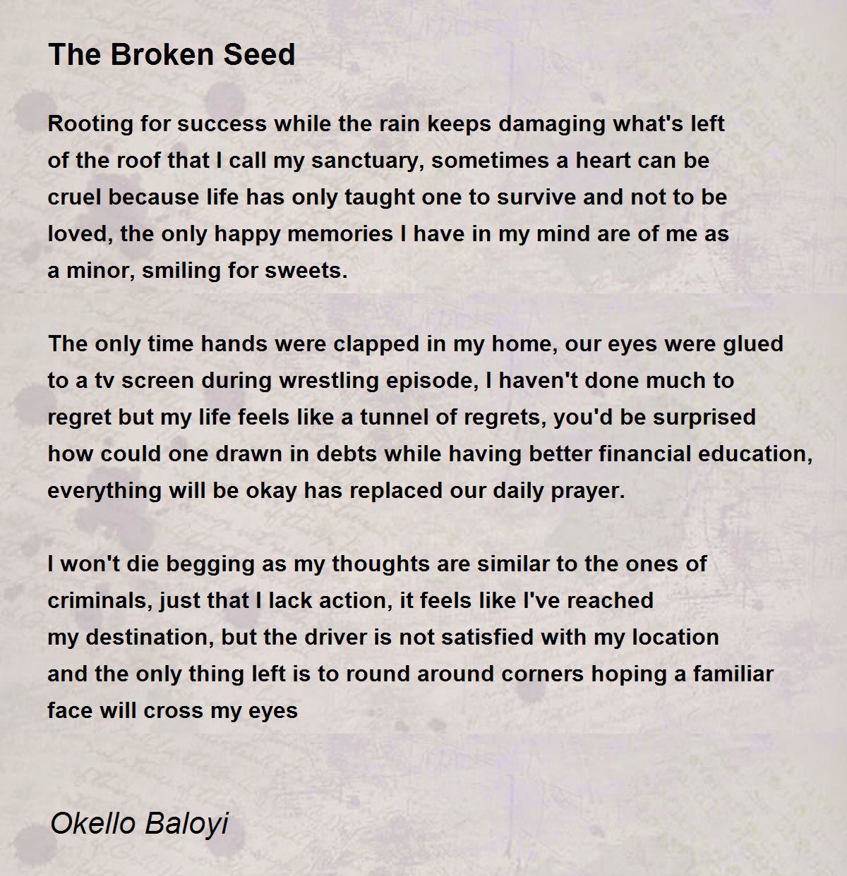 Rooting for success while the rain keeps damaging what's left of the roof that I call my sanctuary, sometimes a heart can be cruel because life has only taught one to survive and not to be loved, the only happy memories I have in my mind are of me as a minor, smiling for sweets.