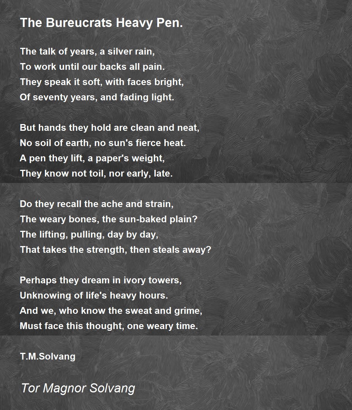 The Bureucrats Heavy Pen. Poem by Tor Magnor Solvang