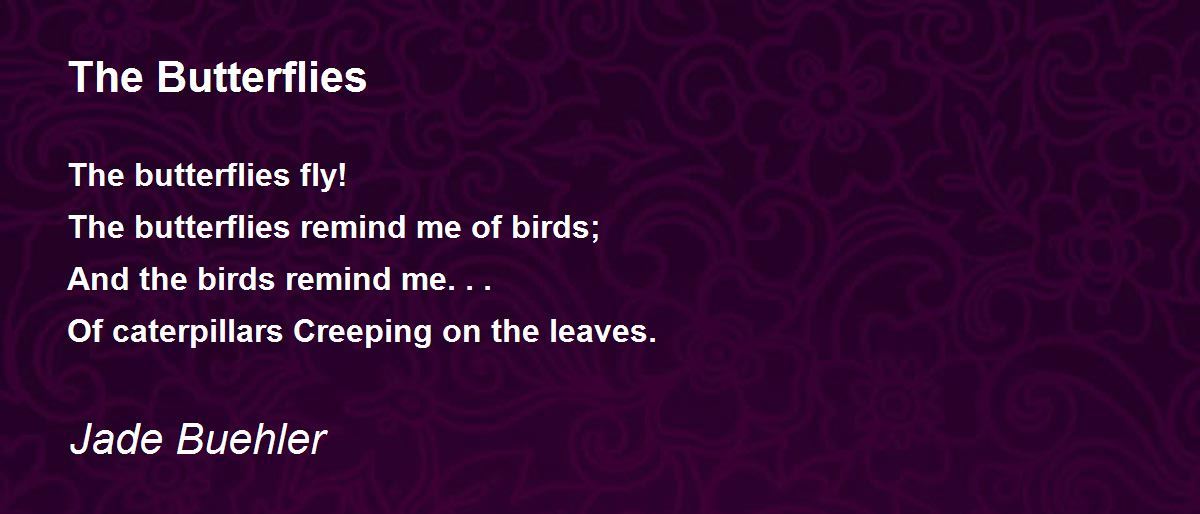 The butterflies fly! The butterflies remind me of birds; And the birds remind me. . . Of caterpillars Creeping on the leaves.