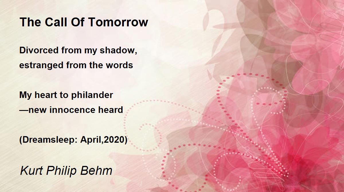 Divorced from my shadow, estranged from the words My heart to philander —new innocence heard (Dreamsleep: April,2020)