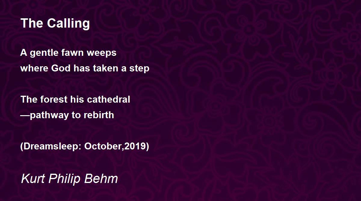 A gentle fawn weeps where God has taken a step The forest his cathedral —pathway to rebirth (Dreamsleep: October,2019)