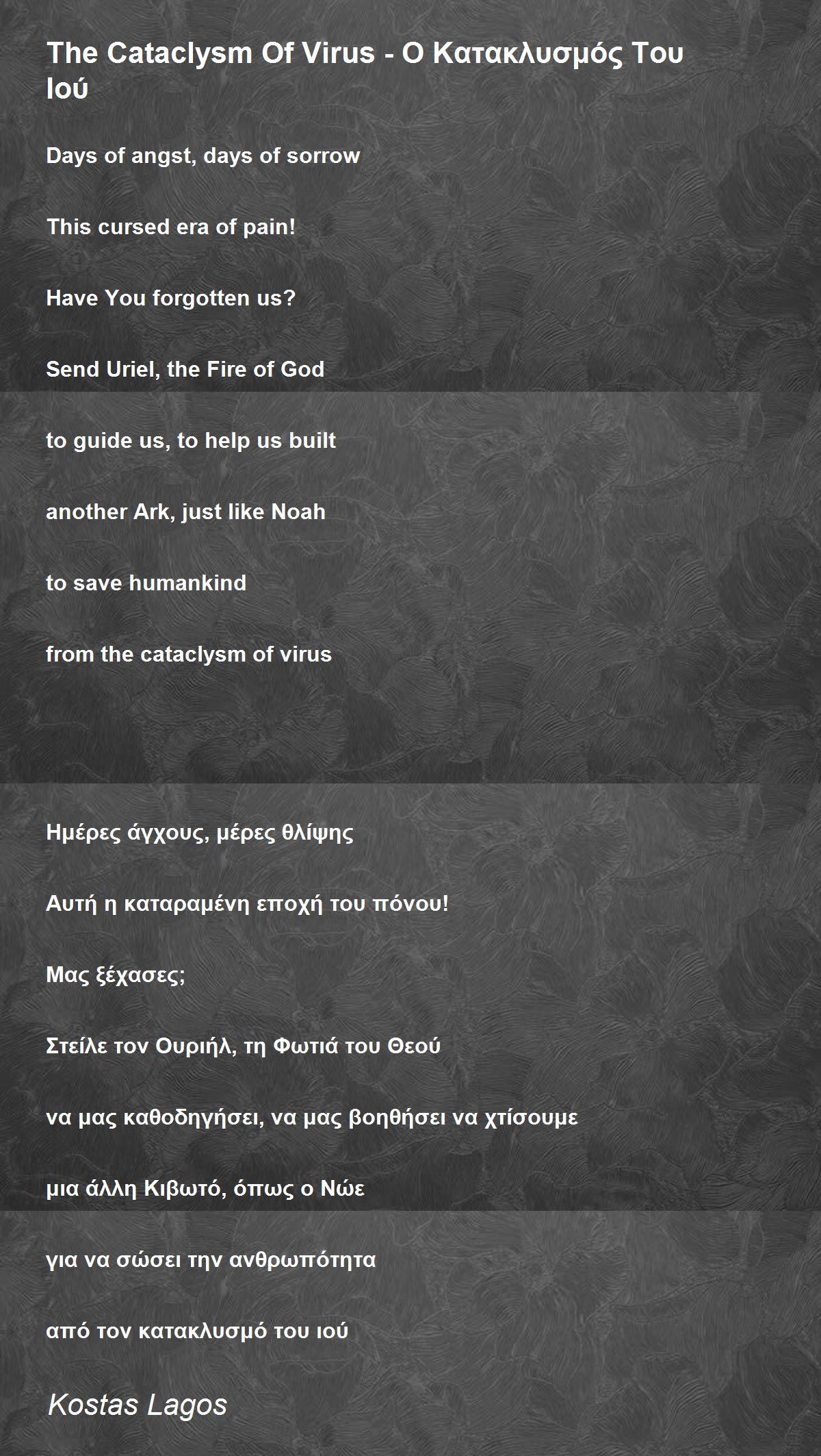 May I praise and participate with in your wonderful and heart rendering, sincere invocation. I really felt it deeply. Well done and timely, dear Kostas. thank you!