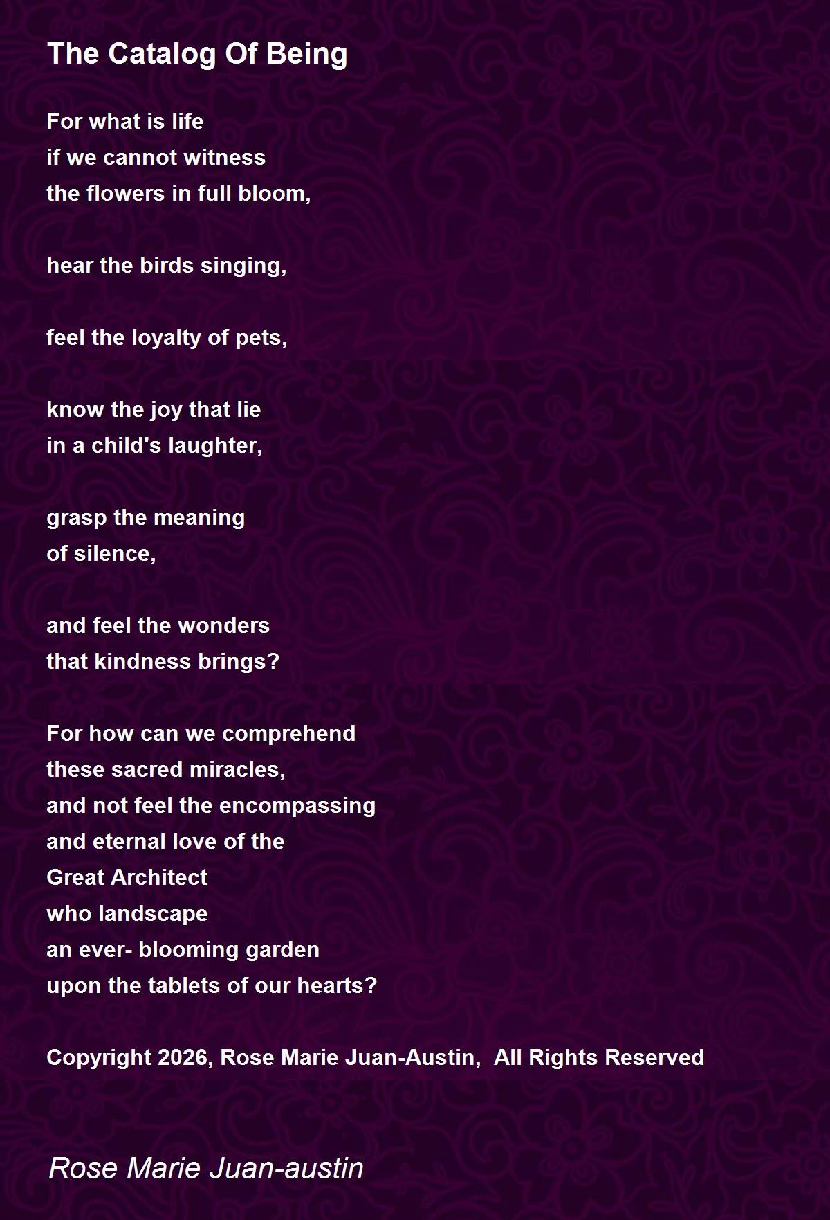The Catalog Of Being Poem by Rose Marie Juan-austin
