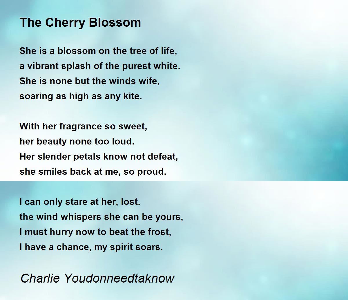 I am anxiously awaiting the cherry blossom in my own yard to burst into it's beautiful display of delicate awakening. Your poem, a lovely reminder. PEACE