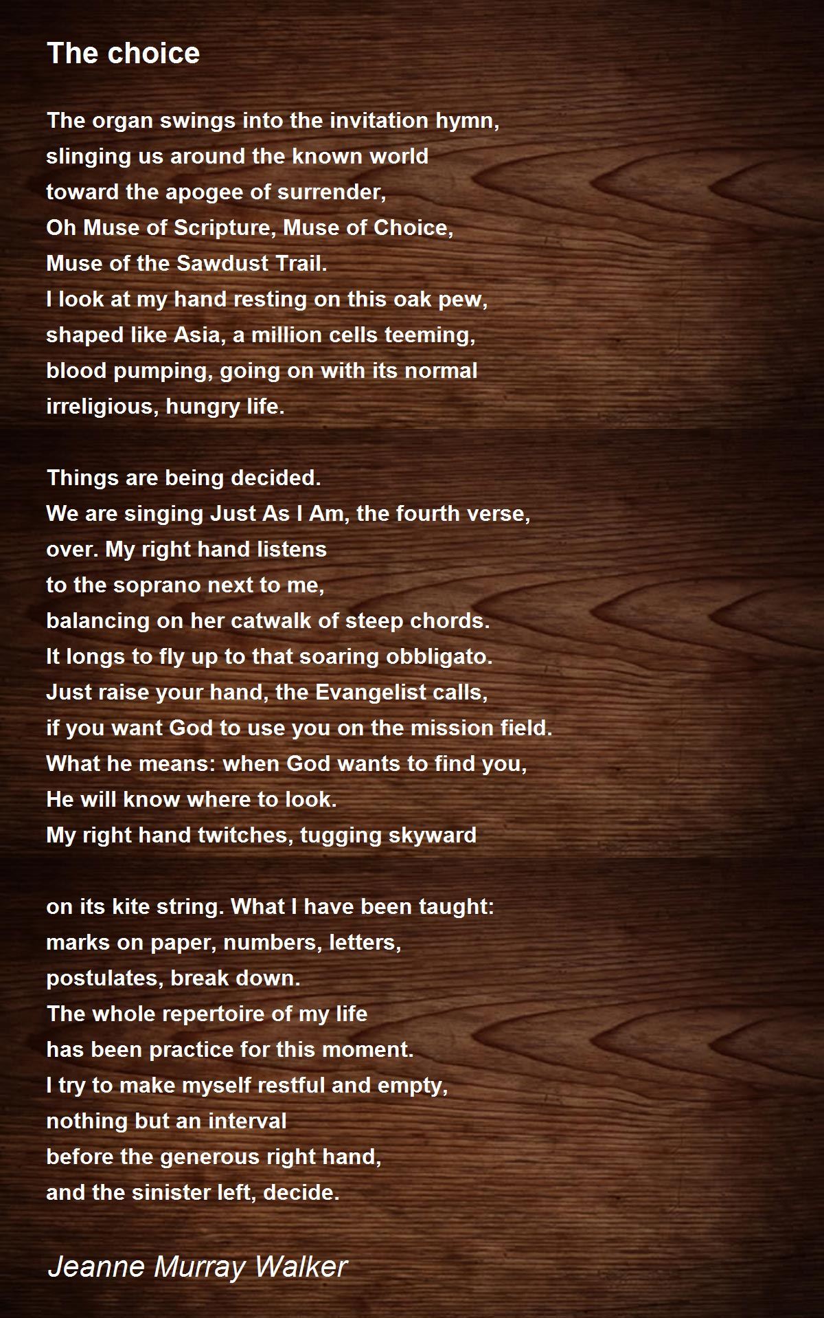 Oh Muse of Scripture, Muse of Choice,