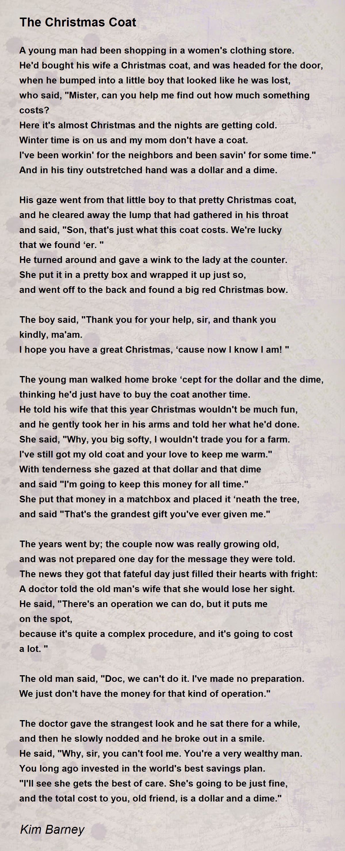 and said, "Son, that's just what this coat costs. We're lucky that we found ‘er."