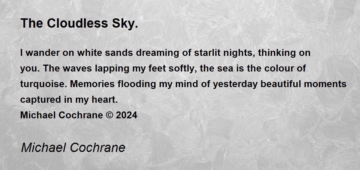 I wander on white sands dreaming of starlit nights, thinking on you. The waves lapping my feet softly, the sea is the colour of turquoise. Memories flooding my mind of yesterday beautiful moments captured in my heart.