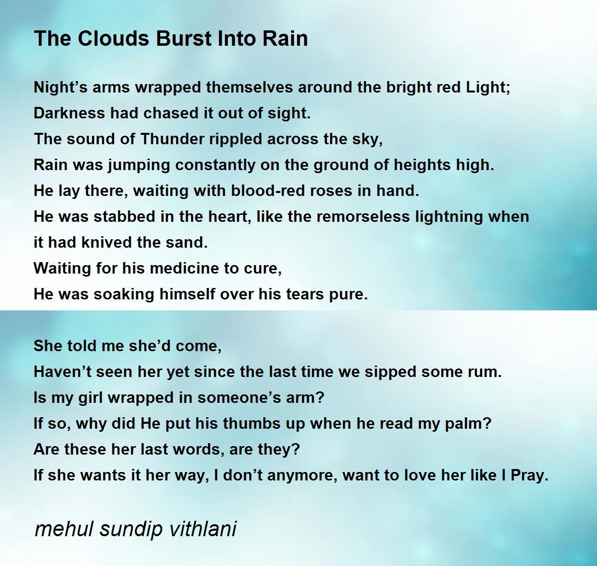 The sound of Thunder rippled across the sky,