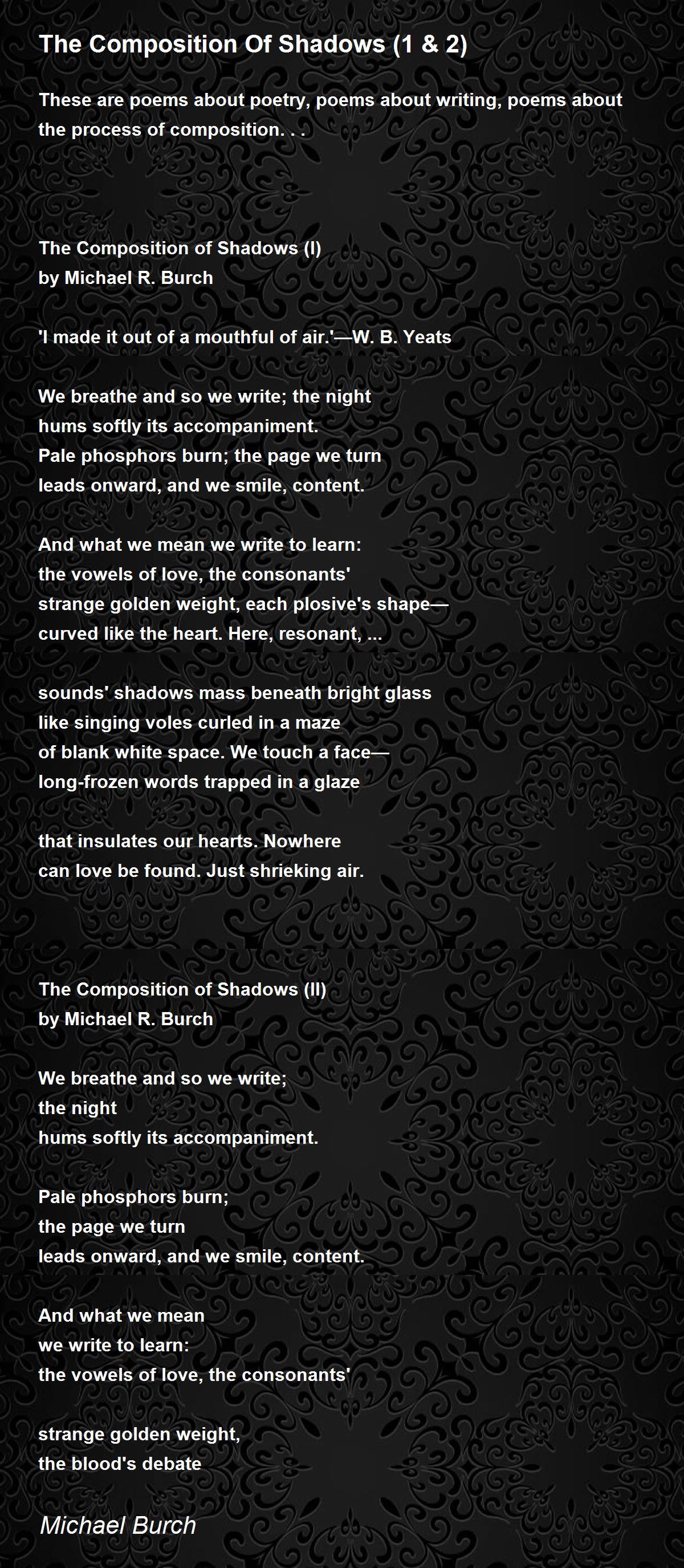 These are poems about poetry, poems about writing, poems about the process of composition...