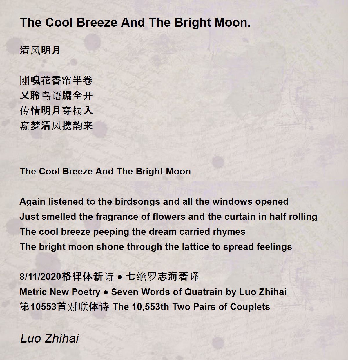 Metric New Poetry ● Seven Words of Quatrain by Luo Zhihai