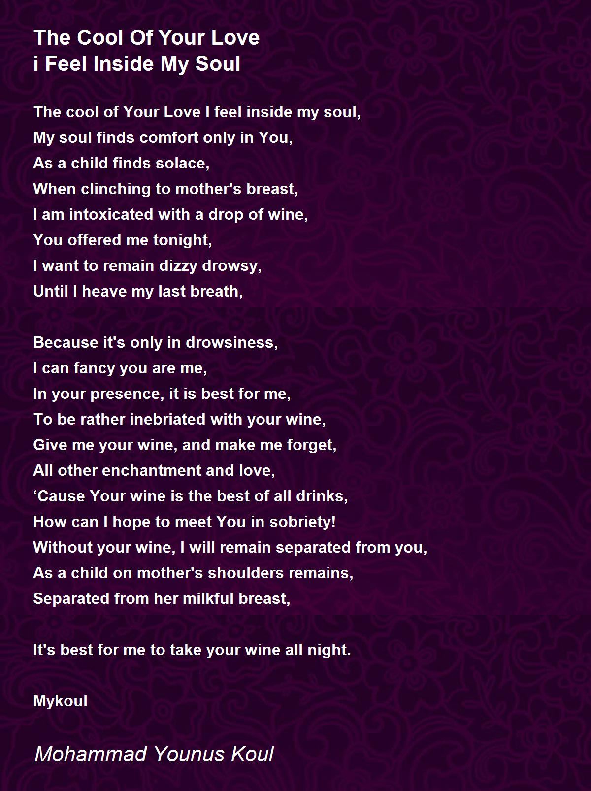 The cool of Your Love I feel inside my soul,