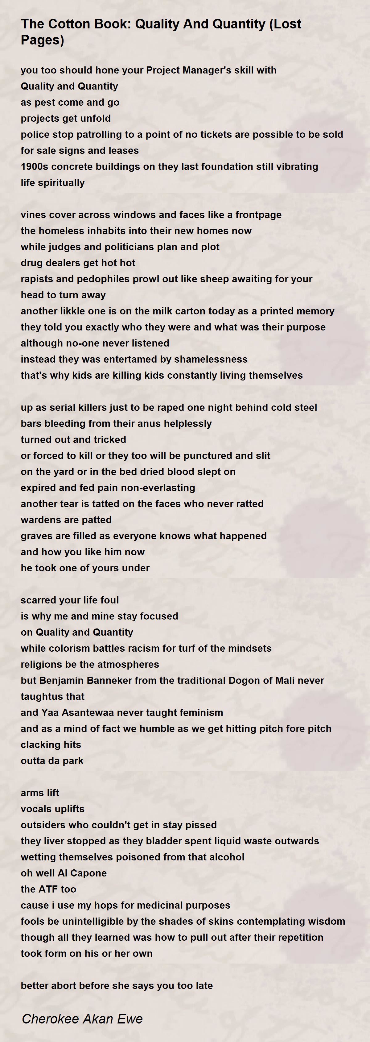 with only Quality and Quantity as a Project Manager with Series 7 on my list as accomplishments although law school first....
