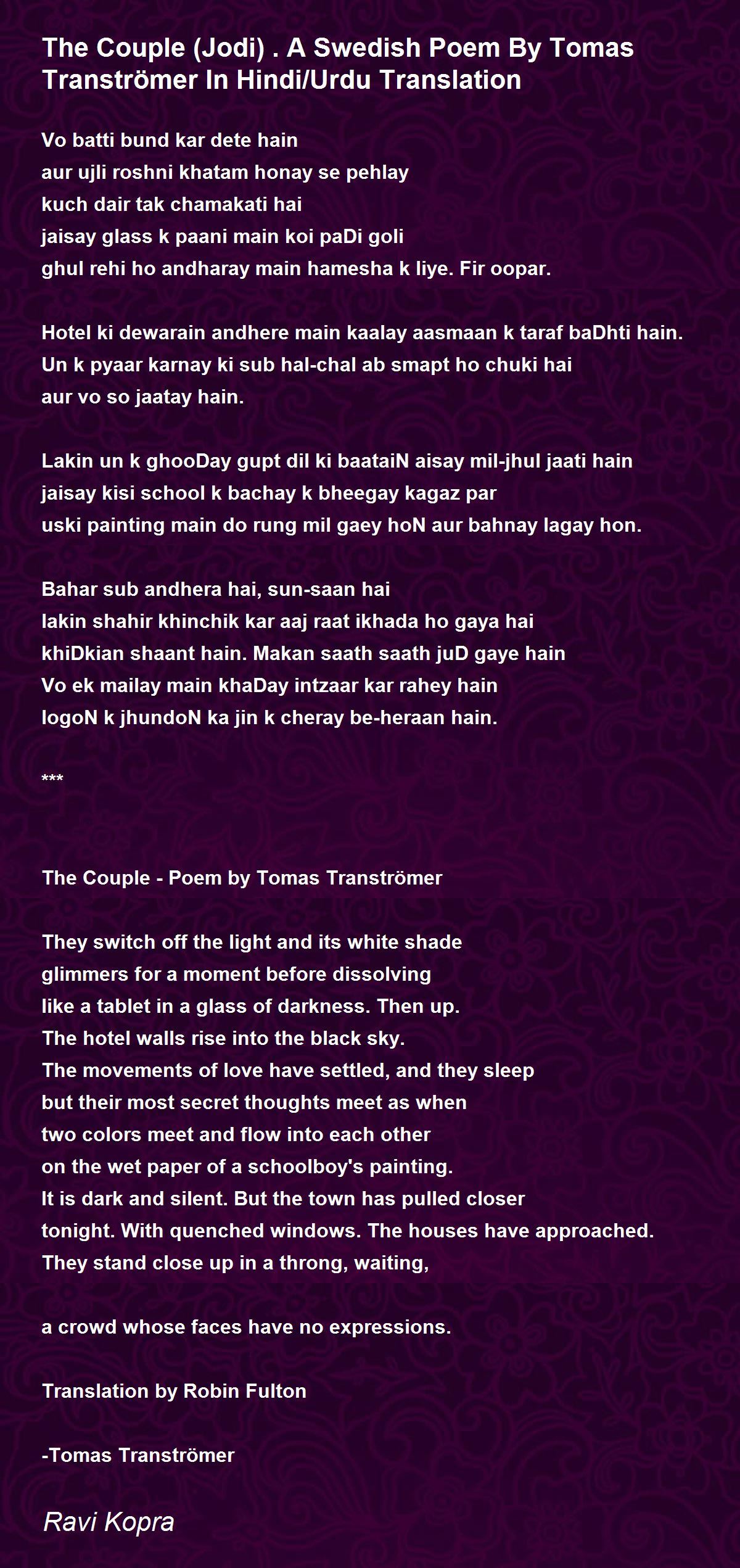 The Couple - Poem by Tomas Tranströmer