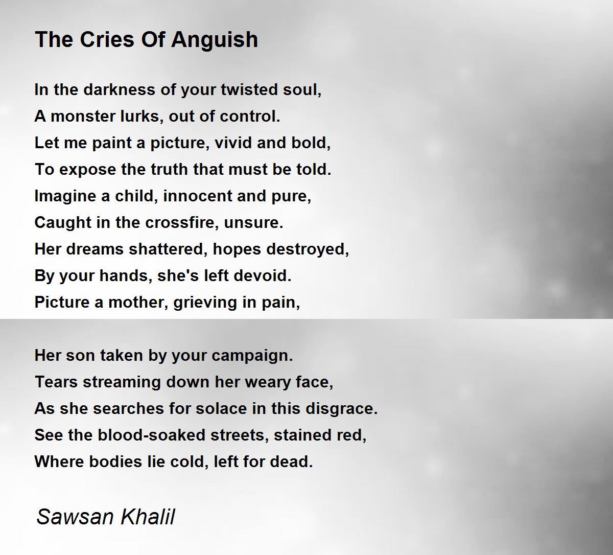 Picture a mother, grieving in pain,