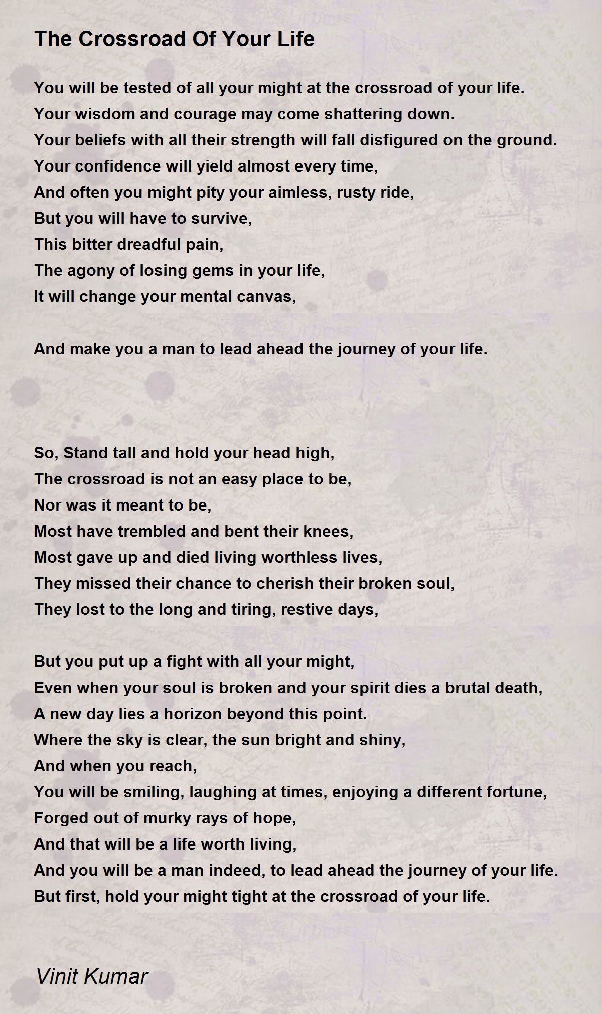 But first, hold your might tight at the crossroad of your life.