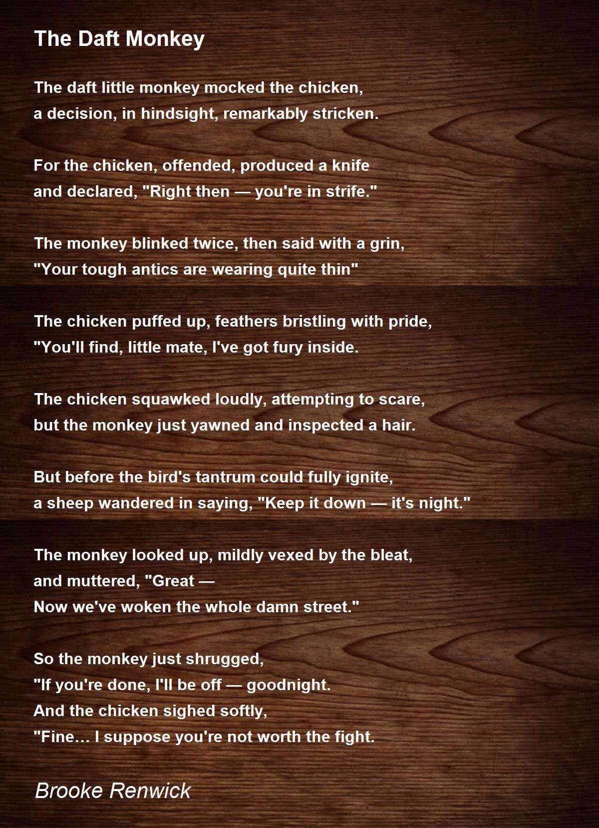 The daft little monkey mocked the chicken,