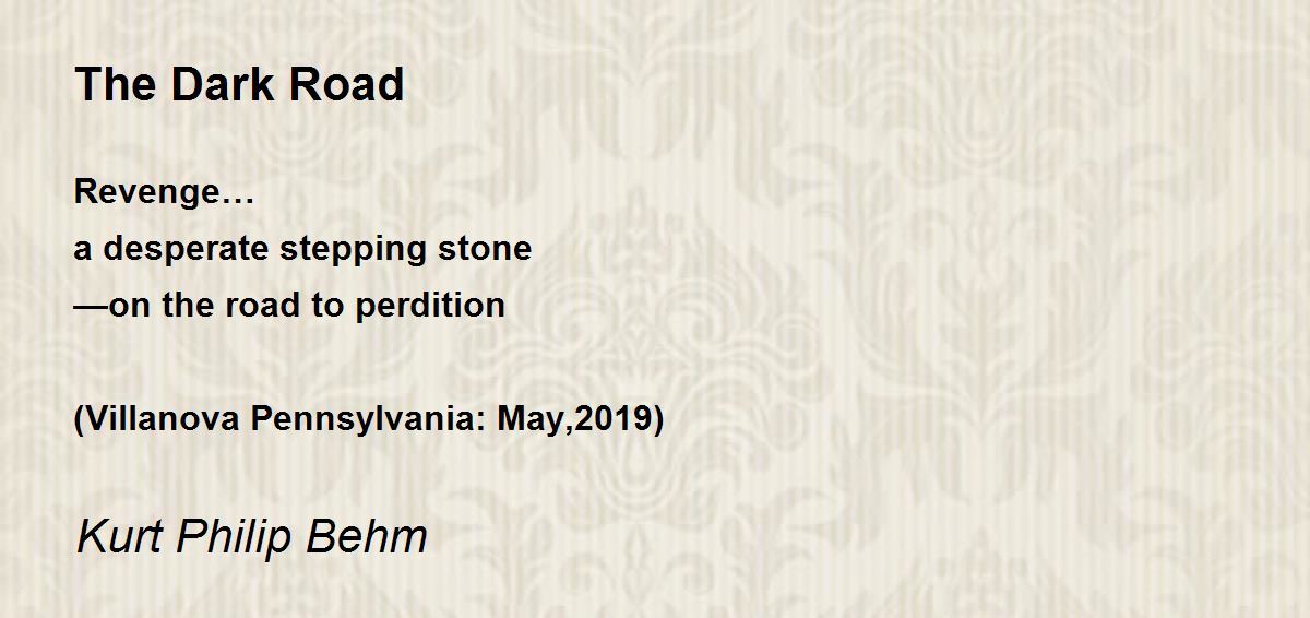Revenge… a desperate stepping stone —on the road to perdition (Villanova Pennsylvania: May,2019)