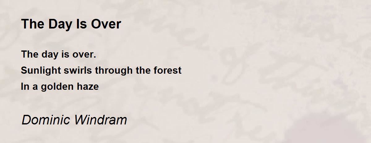 The day is over.Sunlight swirls through the forestIn a golden haze
