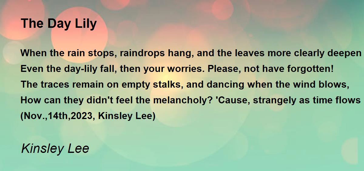 Even the day-lily fall, then your worries. Please, not have forgotten!