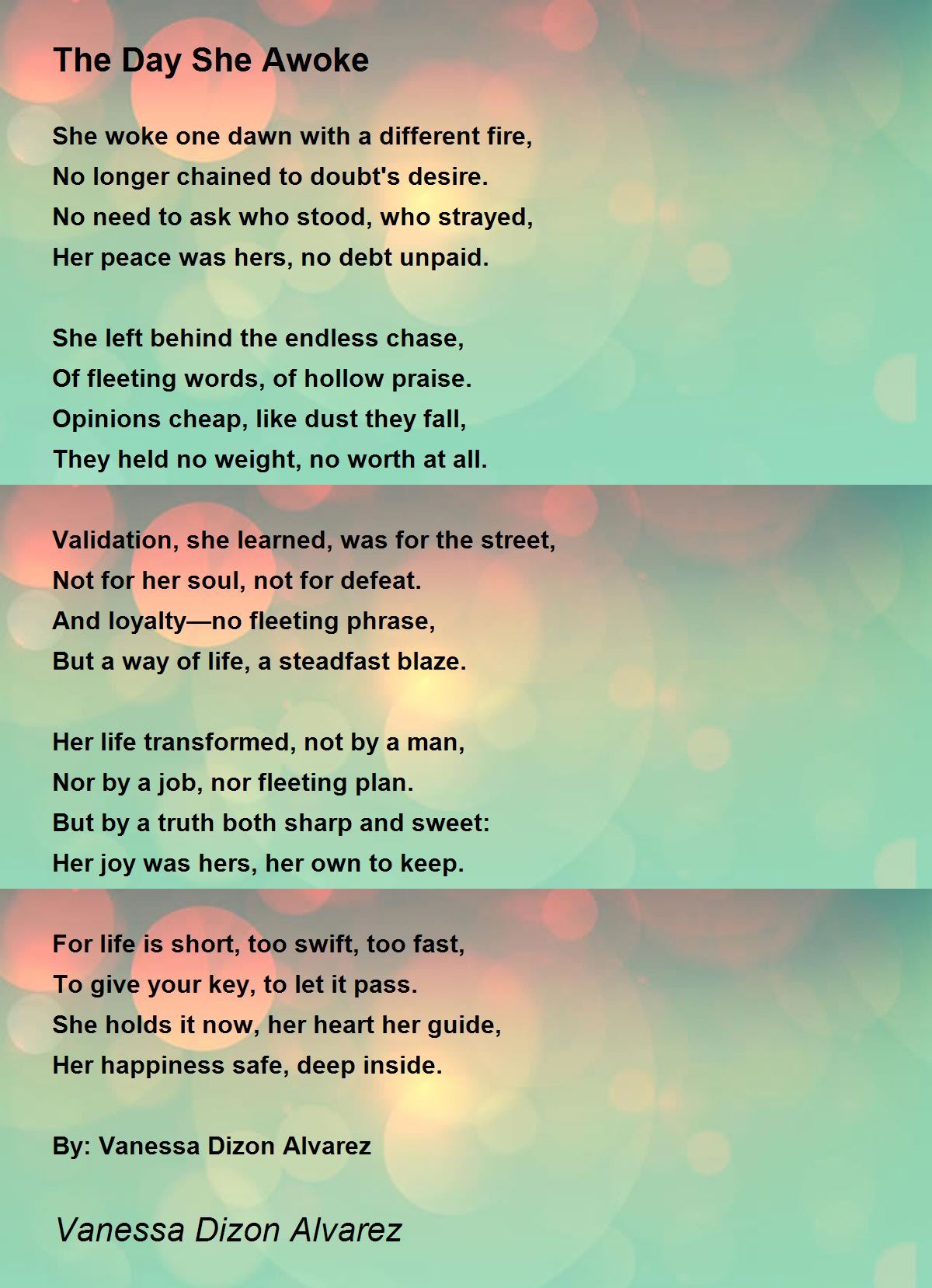 She woke one dawn with a different fire,