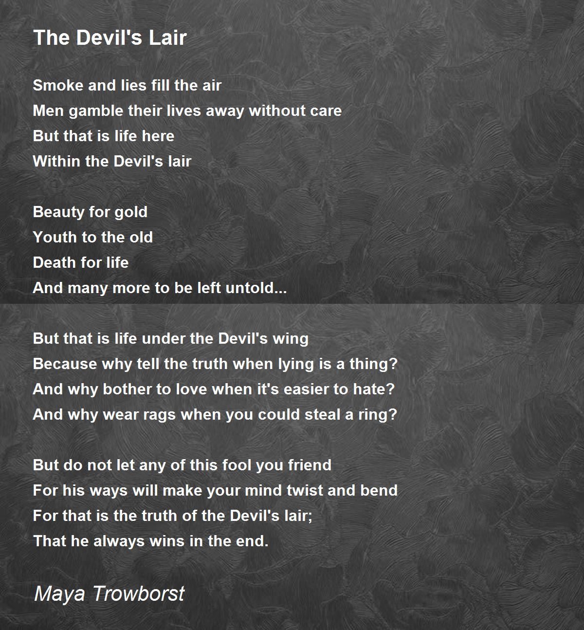 For that is the truth of the Devil's lair;