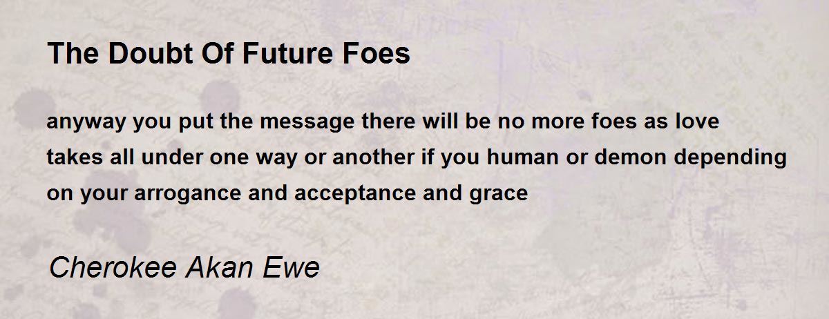anyway you put the message there will be no more foes as love takes all under one way or another if you human or demon depending on your arrogance and acceptance and grace