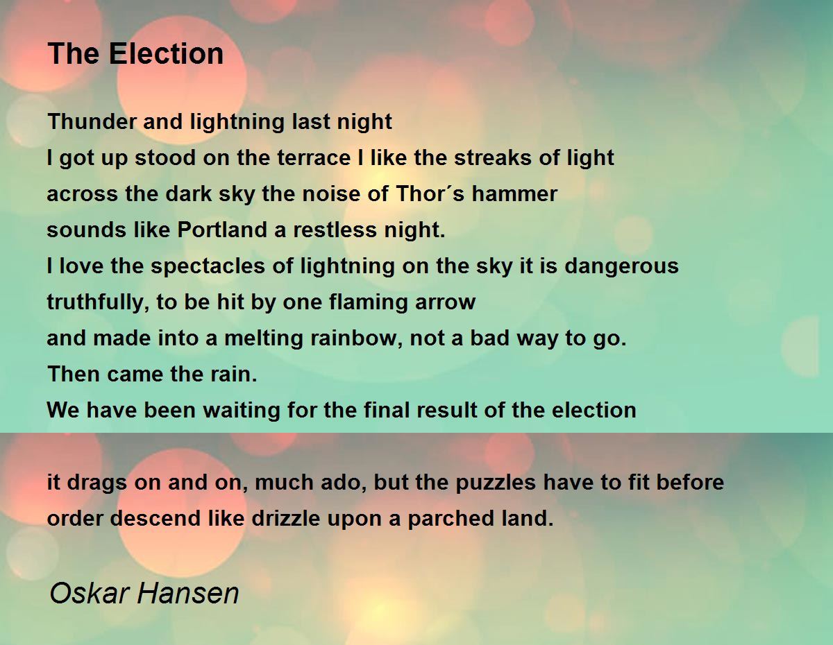 Quite an imaginative write with the nearly impossible interplay of nature and politics coming to fore with the ultimate result of drizzle upon a parched land in the offing. Thanks.