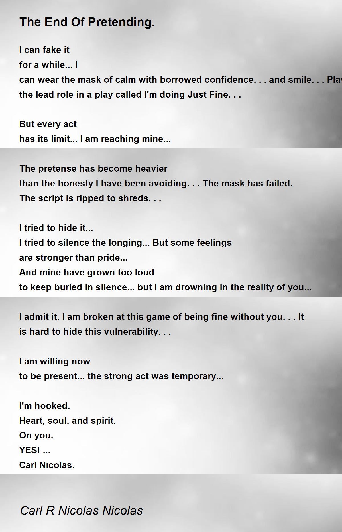 than the honesty I have been avoiding... The mask has failed. The script is ripped to shreds...