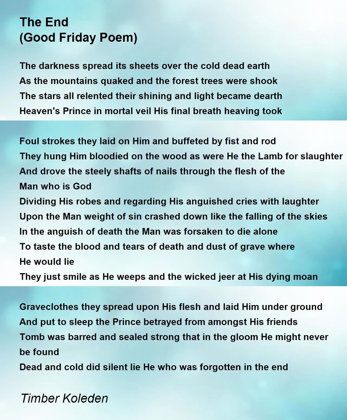 They hung Him bloodied on the wood as were He the Lamb for slaughter