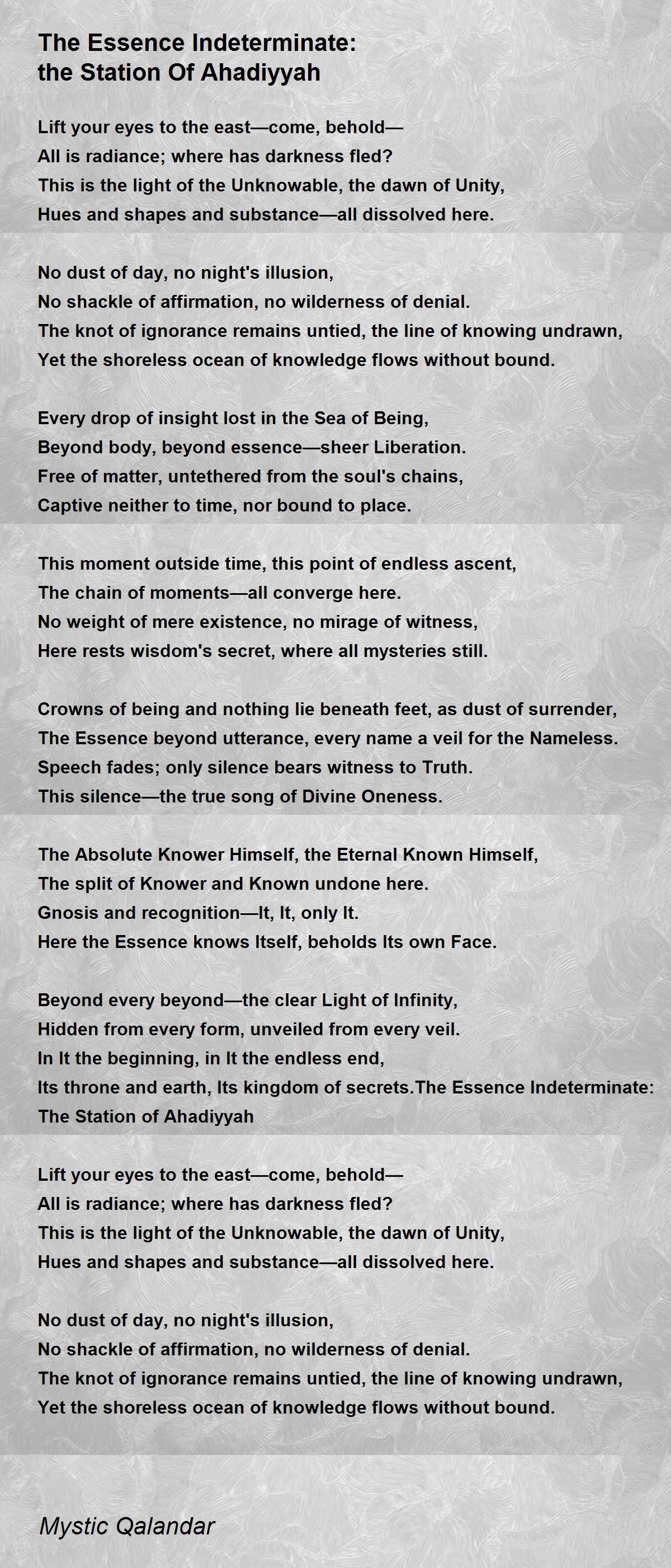 Its throne and earth, Its kingdom of secrets.The Essence Indeterminate: