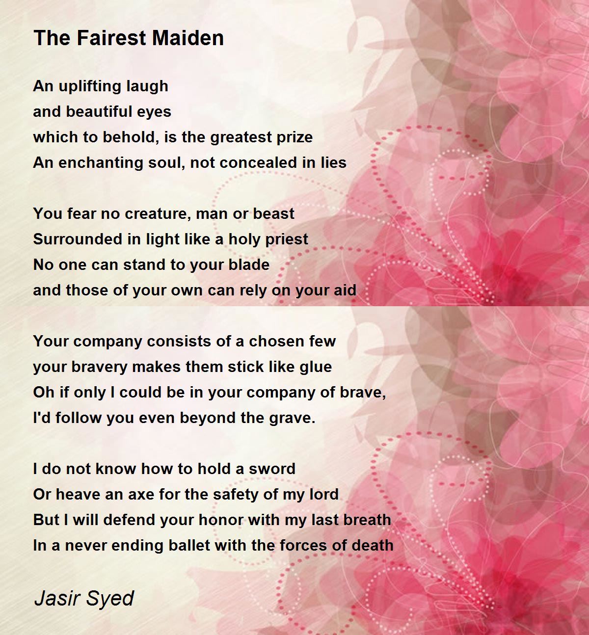 A woman 👩 of virtue is man's highest glory. Beautiful love ❤ poem, well articulated and nicely penned in good rhyme scheme from the heart with conviction. Thanks for Jasir. Please read my poem POETIC MASTERPIECE.