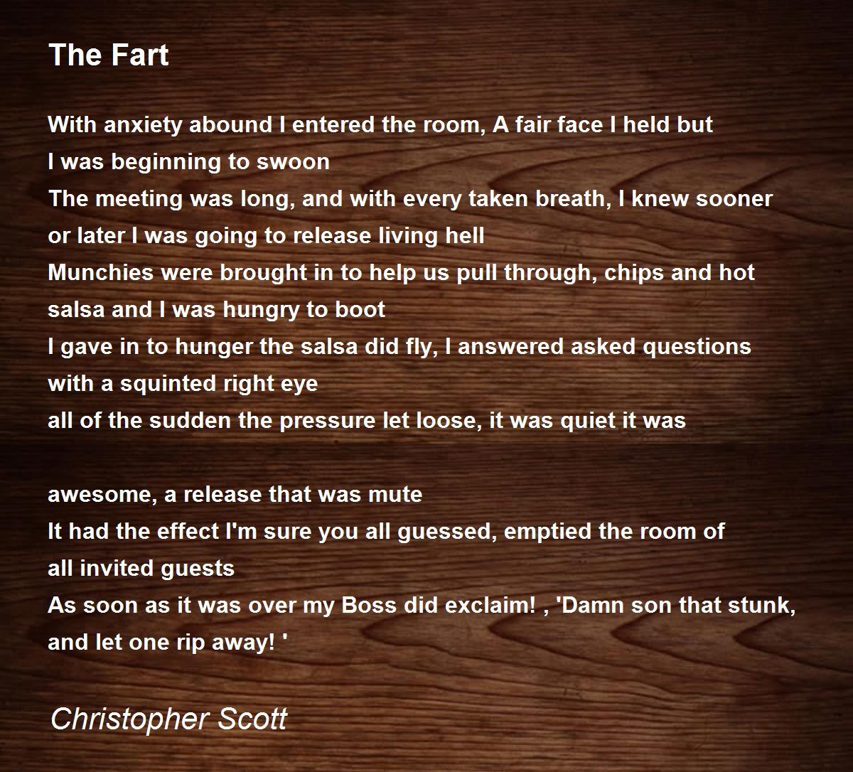 As soon as it was over my Boss did exclaim! , 'Damn son that stunk, and let one rip away! '