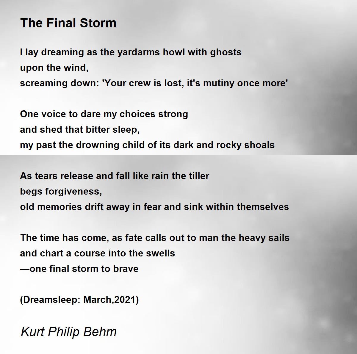 I lay dreaming as the yardarms howl with ghosts