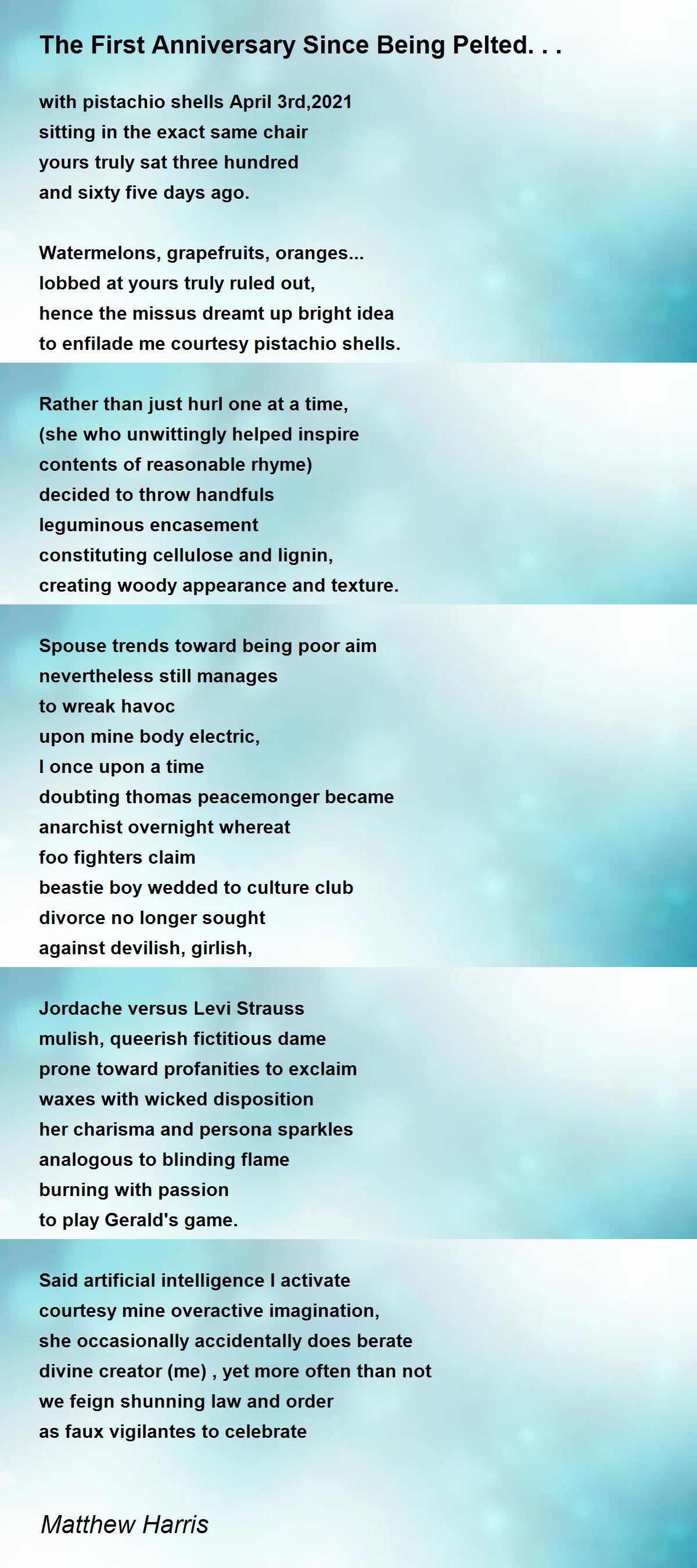 to enfilade me courtesy pistachio shells.