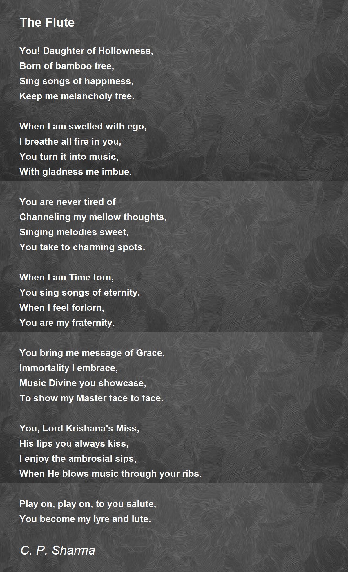 Thank you for a lovely and graceful tribute to the flute. My instrument is made of silver rather than bamboo but I also treasure the solace, elation and spiritual union that its tones and songs can provide.
