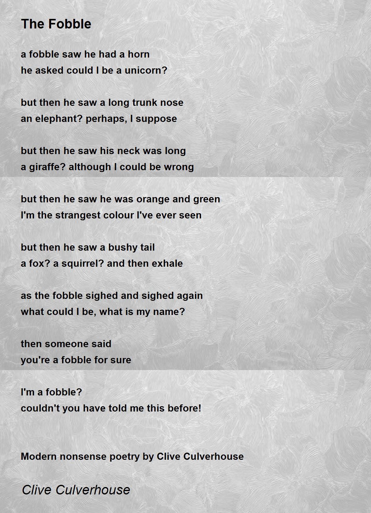 Modern nonsense poetry by Clive Culverhouse