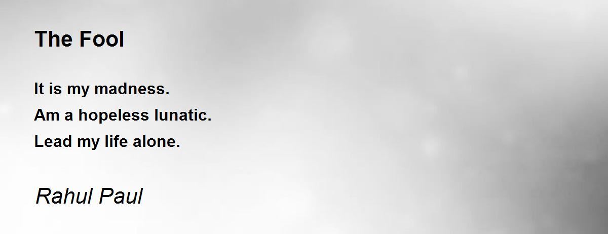 It is my madness. Am a hopeless lunatic. Lead my life alone.