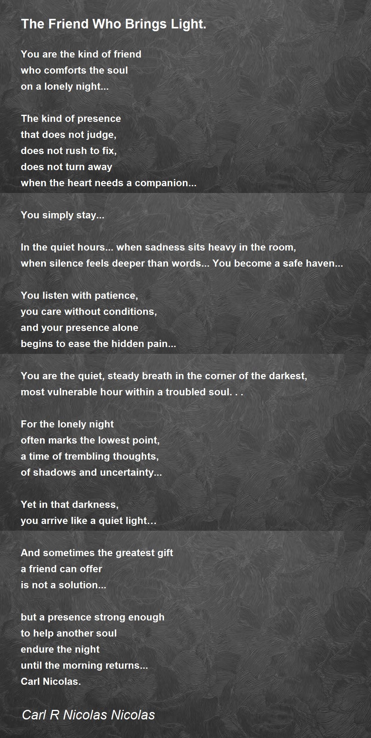 You are the quiet, steady breath in the corner of the darkest, most vulnerable hour within a troubled soul...