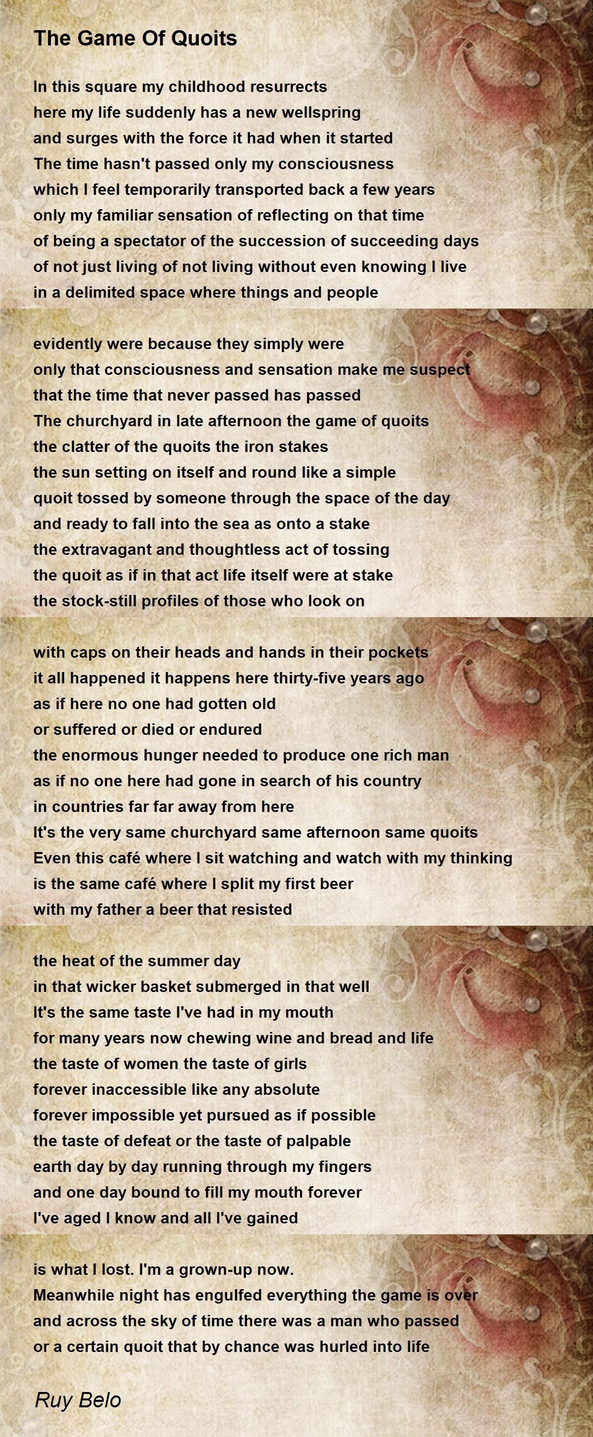 the clatter of the quoits the iron stakes